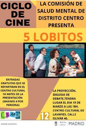 La Comisión de Salud Mental de Centro, formada por distintos profesionales sociosanitarios pertenecientes a la red de atención social a personas con enfermedad mental de la CAM y el centro municipal de Salud Comunitaria del distrito, con la colaboración del Centro Cultural de Lavapiés, se complace en invitar a la proyección de 5 Lobitos.
