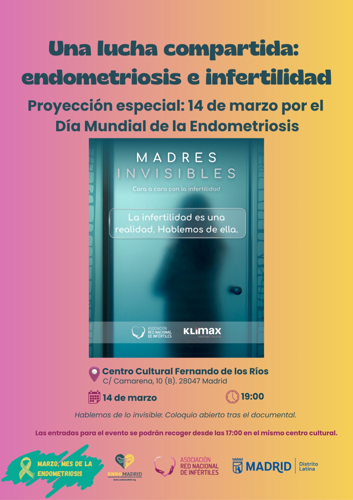 Con motivo del 'Día Mundial de la Endometriosis', la Asociación de Endometriosis de Madrid realizará la proyección del documental 'Madres Invisibles' y, posteriormente, una charla coloquio para la visibilización y concienciación sobre esta enfermedad.