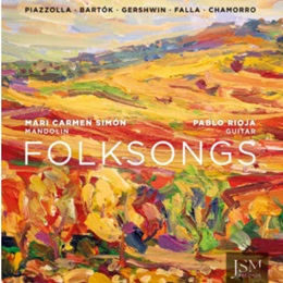 Mari Carmen Simón (mandolina) y Pablo Rioja (guitarra) presentan Folksongs, un álbum que recorre el nacionalismo musical desde una sonoridad propia y contemporánea. El disco viaja desde el tango de Piazzolla, con contrastes dinámicos que evocan ambientes íntimos y rítmicos, hasta las danzas folclóricas rumanas de Bartók, donde destaca la energía de la mandolina y técnicas poco habituales como la tambora. Gershwin aporta el color urbano y jazzístico con sus Tres preludios, y el recorrido culmina con una nueva mirada a la Suite popular española de Falla, reinterpretada con una tímbrica fresca que resalta su esencia popular y cantabile.