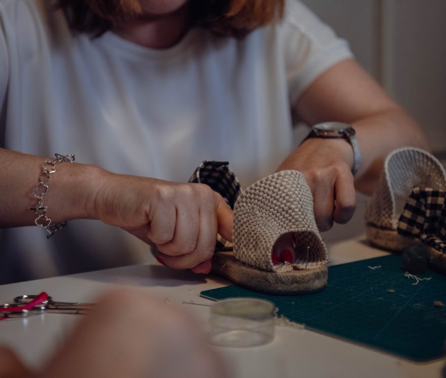 De la mano de Teresa Entretejidos te proponemos un taller en el que podrás aprender la técnica de cosido tradicional, con el fin de elaborar unas alpargatas destalonadas tipo bailarina.