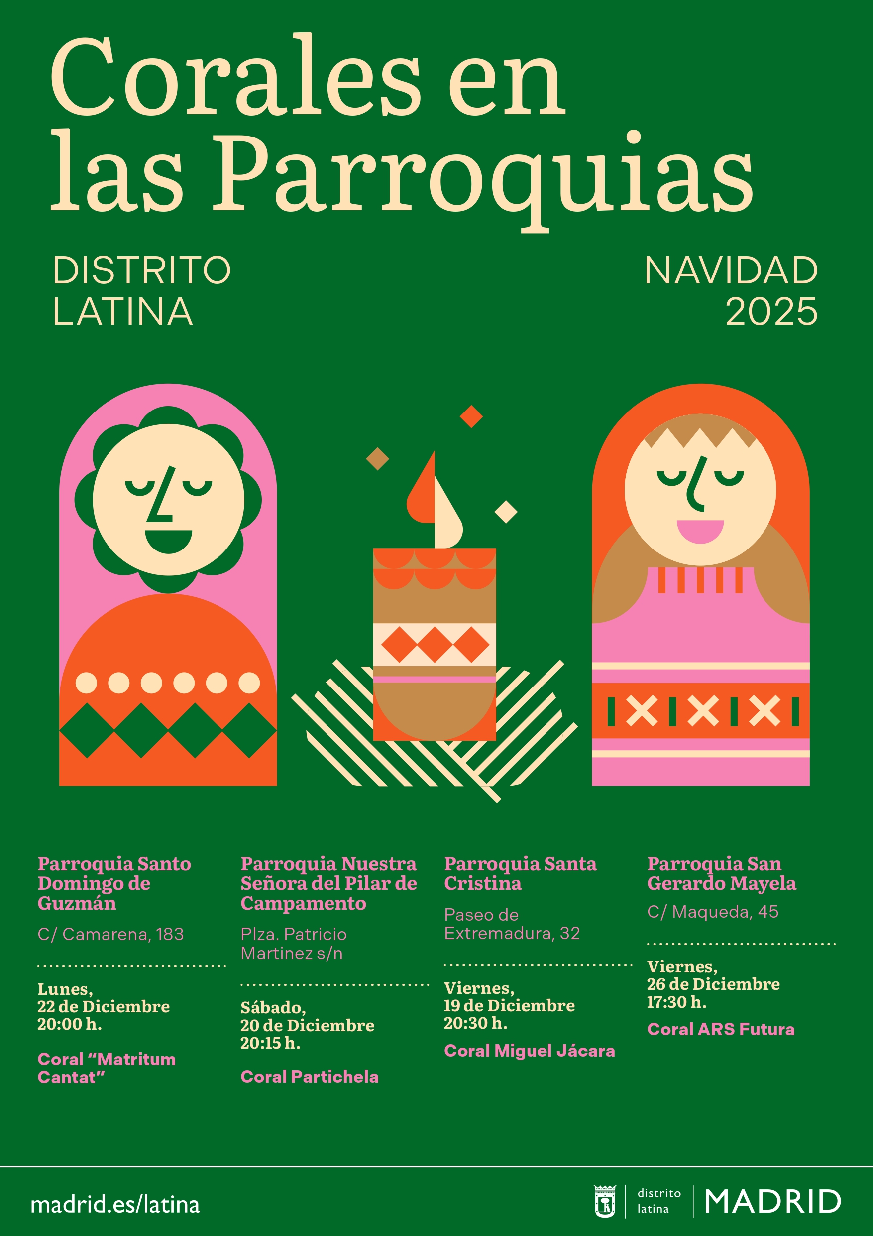 El Distrito de Latina celebra estas fiestas con un ciclo de 'Conciertos de Corales en sus Parroquias', ofreciendo la oportunidad de disfrutar de la Música de Navidad en un entorno único.
