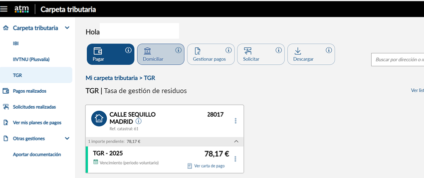 Se ha creado un nuevo espacio dentro de la Carpeta tributaria para poder tramitar y visualizar todo lo relativo a la nueva Tasa por Prestación del Servicio de Gestión de Residuos de Competencia Municipal, en adelante TGR.