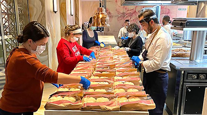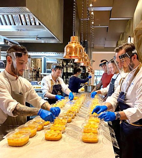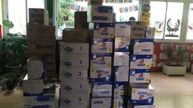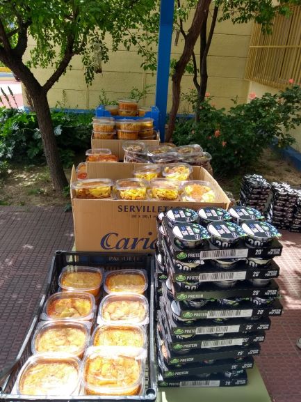 Imágenes de reparto solidario de comida Colegio Valle Inclán