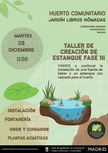 Taller de Creación de estanque en el huerto Libros Nómadas: martes 09 de diciembre a las 11:00 h