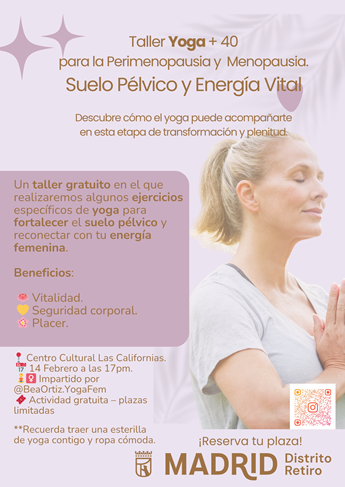 - 14 febrero 2026. Suelo Pélvico y Energía Vital. Ejercicios de yoga para fortalecer el suelo pélvico y reconectar con tu energía femenina. Beneficios: vitalidad, seguridad corporal, placer.