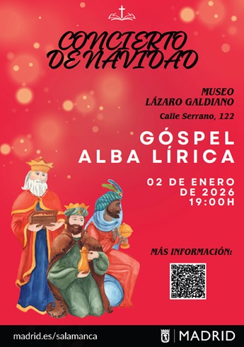 Tenemos el placer de anunciaros que el viernes 2 de enero a las 19h, en el auditorio del Museo Lázaro Galdiano, en la calle Serrano 122, hemos programado un concierto especial de Góspel a cargo de Alba Lírica, una agrupación con más de 25 años de trayectoria que repasará, en su espectáculo “Alba Góspel”, algunas de las piezas más emblemáticas de este estilo musical, incluyendo versiones de artistas como Aretha Franklin o Stevie Wonder, en un concierto lleno de alegría, esperanza y emoción.