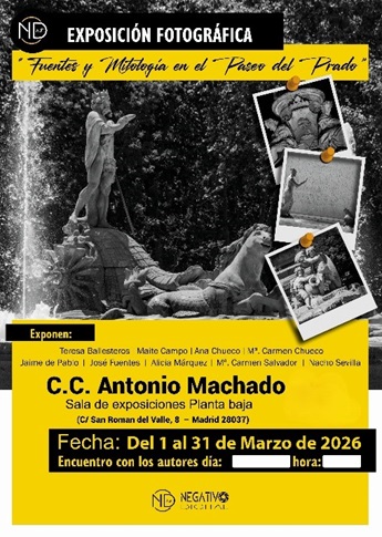 Fotografías en blanco y negro con el tema central “Fuentes y Mitología en el Paseo del Prado” con treinta y seis imágenes en formato cuadrado 35x35 sobre fondo blanco tipo fotografía polaroid, sobre marco de 40x50 La idea es de presentar un retrato de las fuentes del Paseo del Prado como exponente del neoclasicismo español con detalles de las mismas y su relación con la mitología griega y romana, a través de un recorrido visual que va desde Plaza de Cibeles a Plaza del Emperador Carlos V (glorieta de Atocha), redescubriendo la belleza del Paseo del Prado en su relación entre el arte y la mitología en lo cotidiano. Todas las fotografías llevan un pequeño cartel aparte con una breve descripción que ayuda al espectador a tener mayor conocimiento de las imágenes.