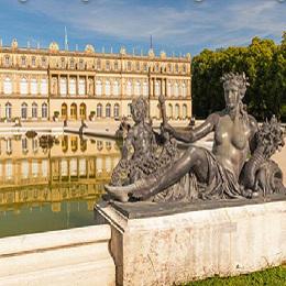 Concebido como un homenaje al admirado rey Luis XIV y su derecho divino, Herrenchiemsee se proyectó como una residencia privada, aunque de dimensiones grandiosas, tanto que los gastos de construcción de tan enorme proyecto llevaron las finanzas reales al borde de la quiebra.