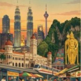 La sorprendente y moderna arquitectura de las Torres Petronas en Kuala Lumpur ofrece un contrapunto a la imagen de un país, con un pasado hinduista y budista, en el que la actividad del Islam es preponderante y muy poderosa. Sirva como ejemplo la atracción y peregrinación a las Cuevas de Batu y a los templos tailandeses.