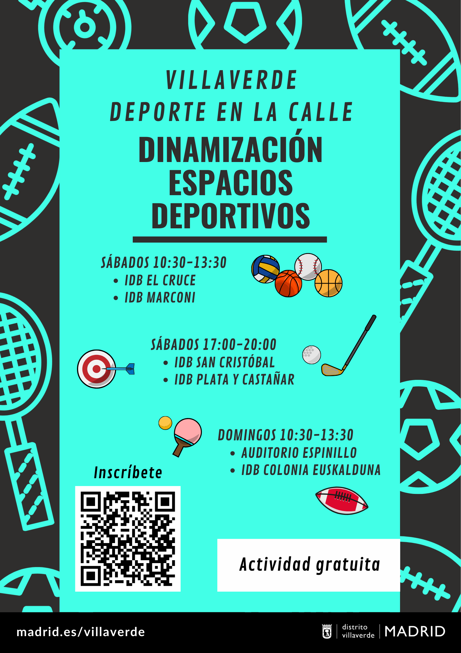 Las inscripciones son gratuitas y se realizarán a través del QR del cartel o accediendo a Dinamización - Deporte en la Calle Villaverde.