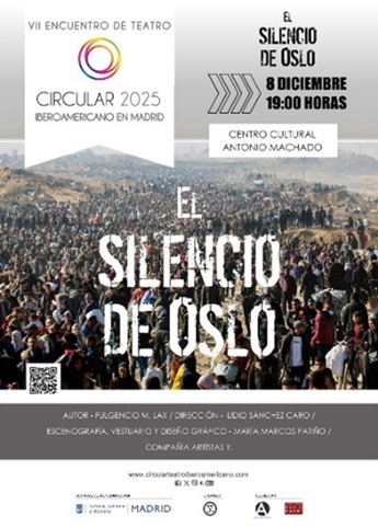 Un canto lírico y dramático sobre las guerras, la violencia y la sinrazón humana. Se enmarca en la rueda histórica de los conflictos bélicos remitiendo desde su título a los Acuerdosde Oslo de 1993, pero es un grito atemporal de unos cuerpos que son todos los cuerpos, que es la gente del mundo ante una realidad que lamentablemente sigue presente en nuestros días. En sus escenas se subraya el sentido más humano de unos personajes que, pese a su situación, desean abrazar, seguir adelante y sentirse parte de la humanidad. El silencio de Oslo, aunque es una fotografía del dolor, también es un drama poético profundamente hermoso. Su autor, Fulgenio M. Lax, posee una amplia trayectoria, con estrenos en España, Europa y América Latina. Ha obtenido, entre otros premios, el de Mejor autor teatral murciano, en 2017.